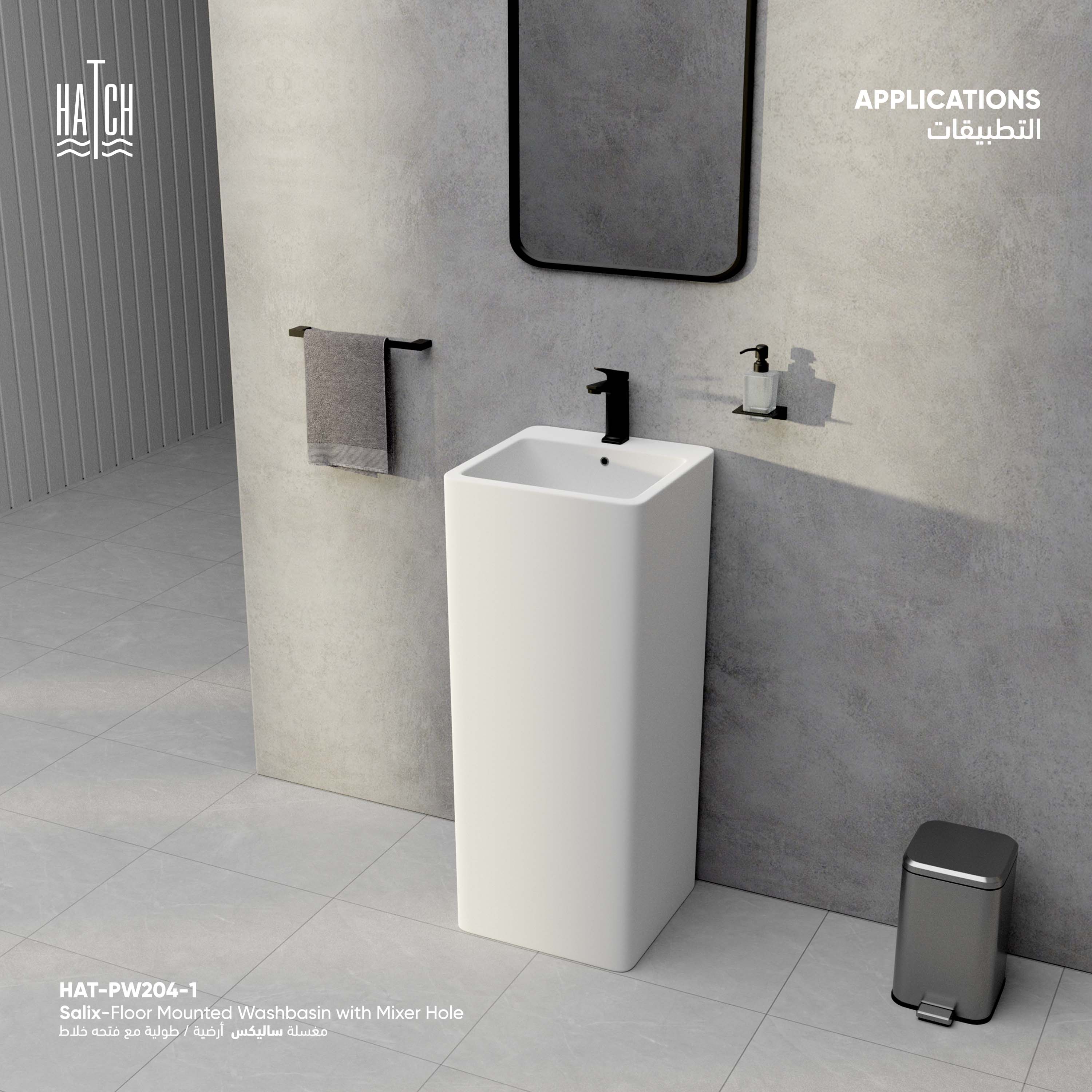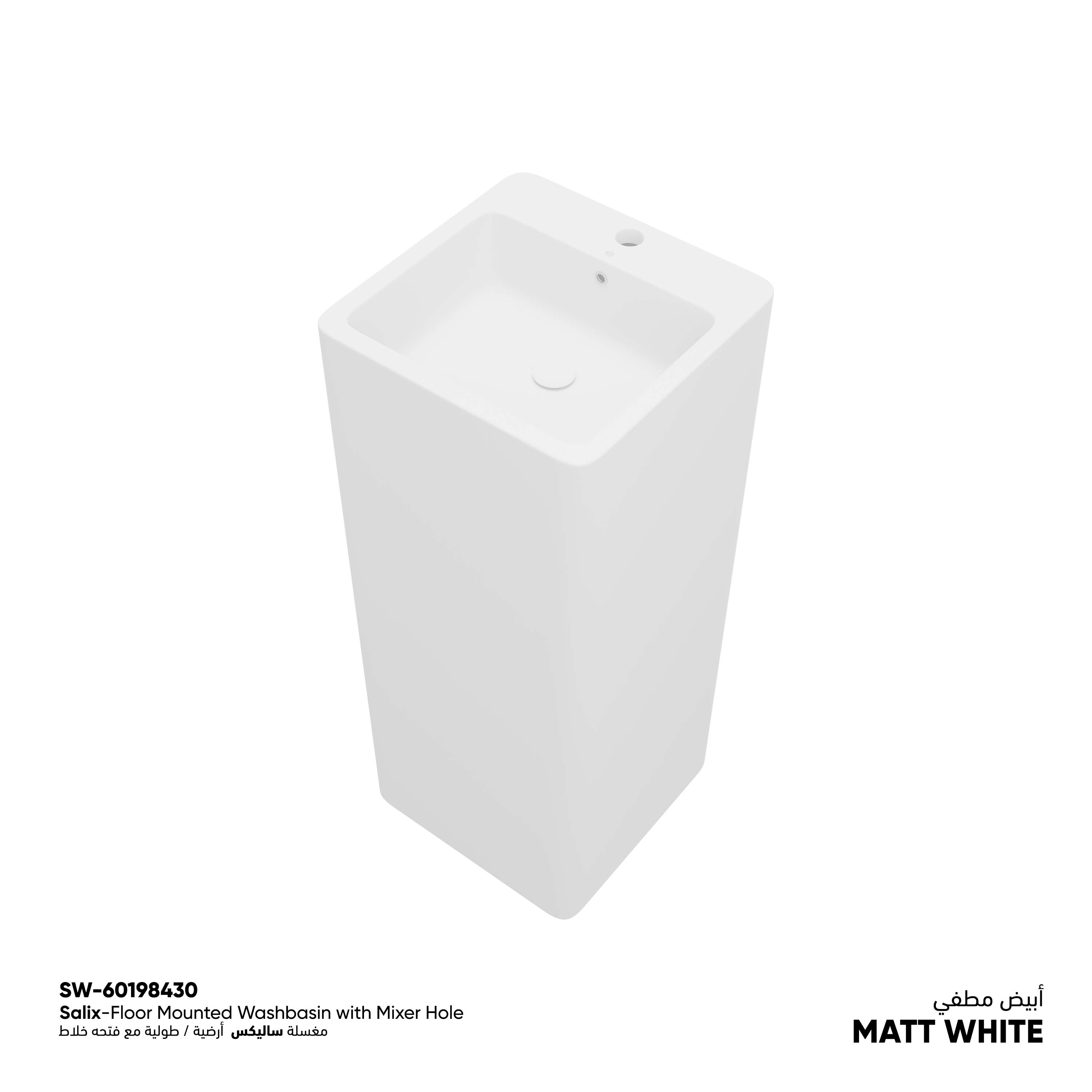 Salix Floor Mounted Washbasin with Mixer Hole