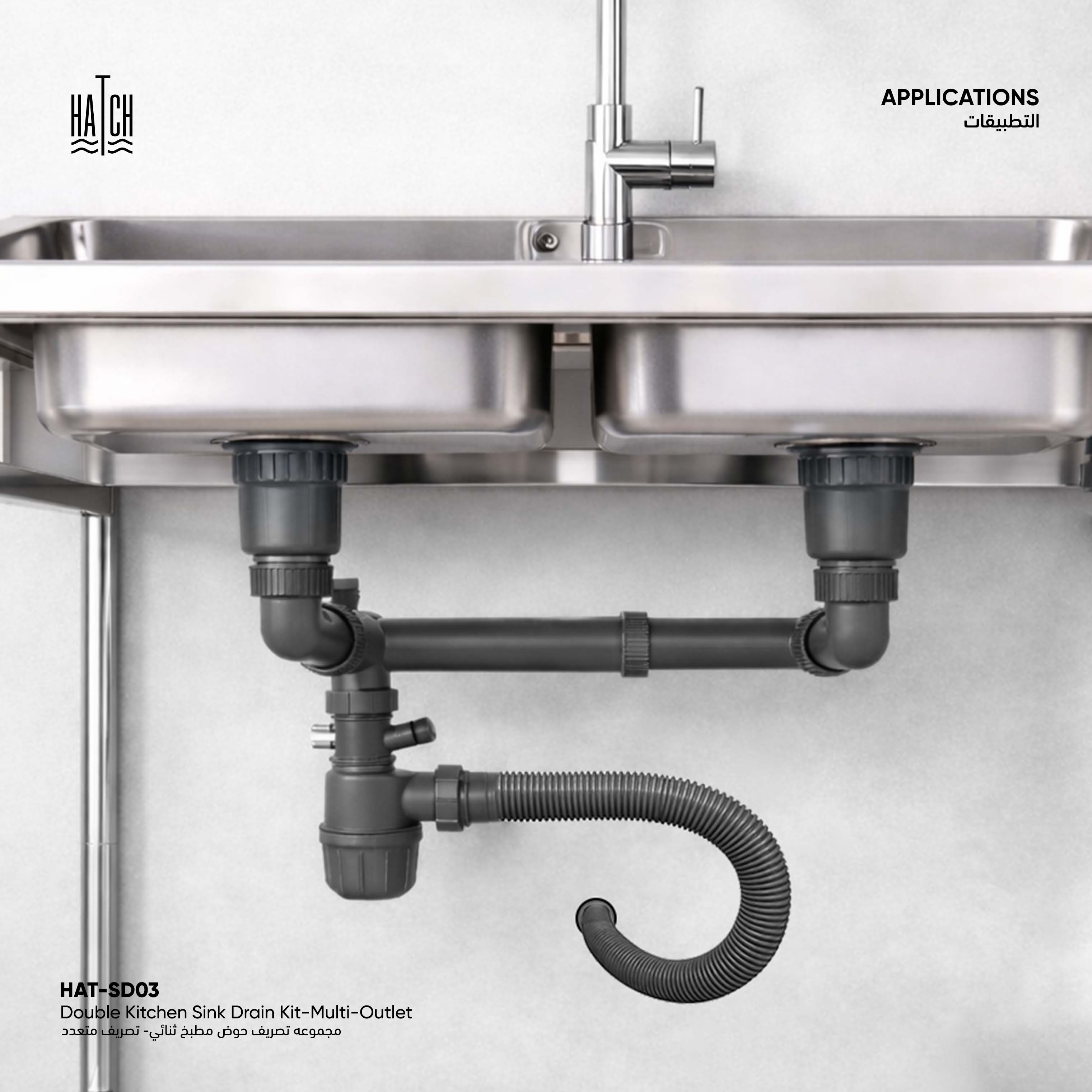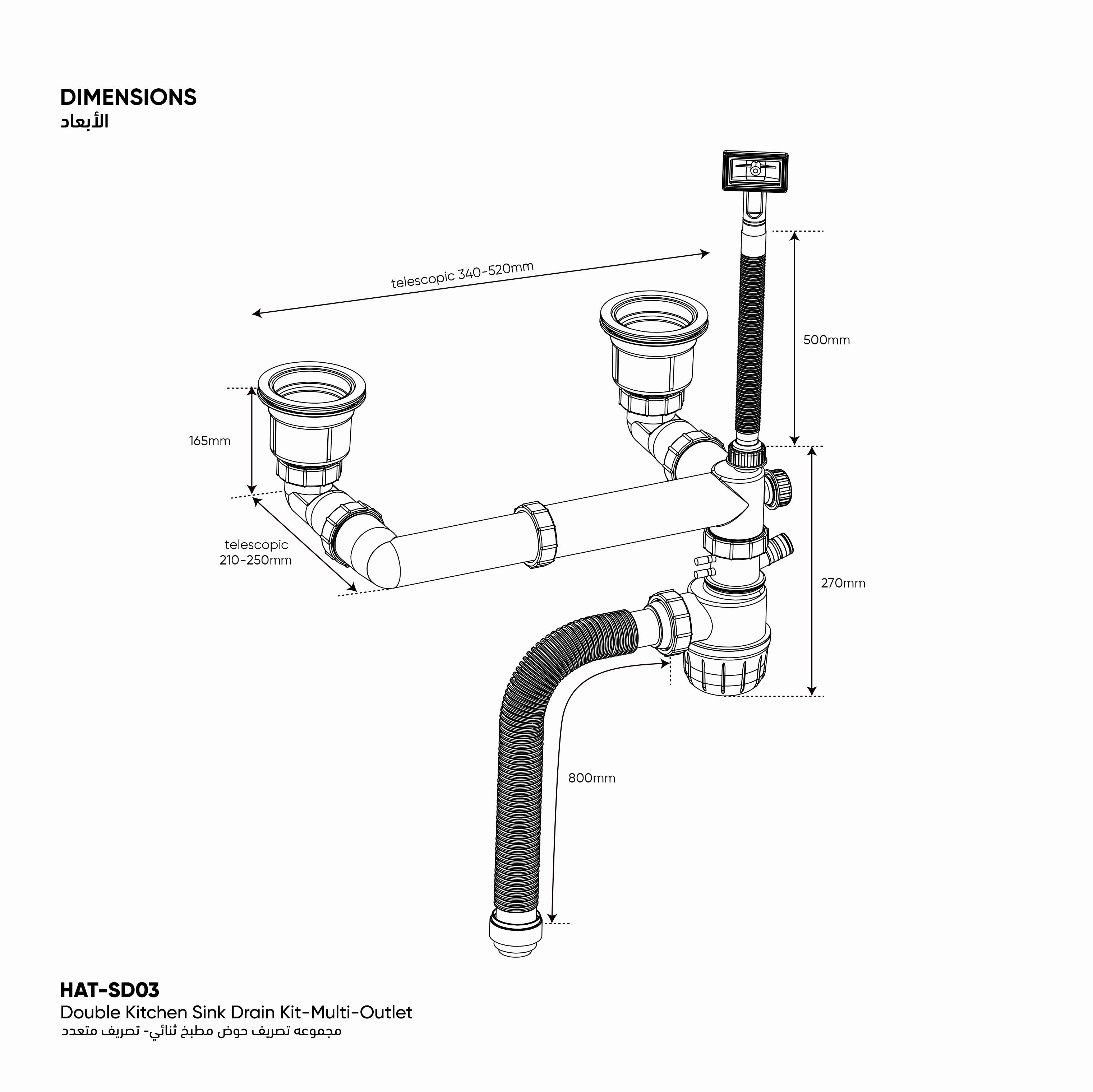 Double Kitchen Sink Drain Kit - Multi-Outlet