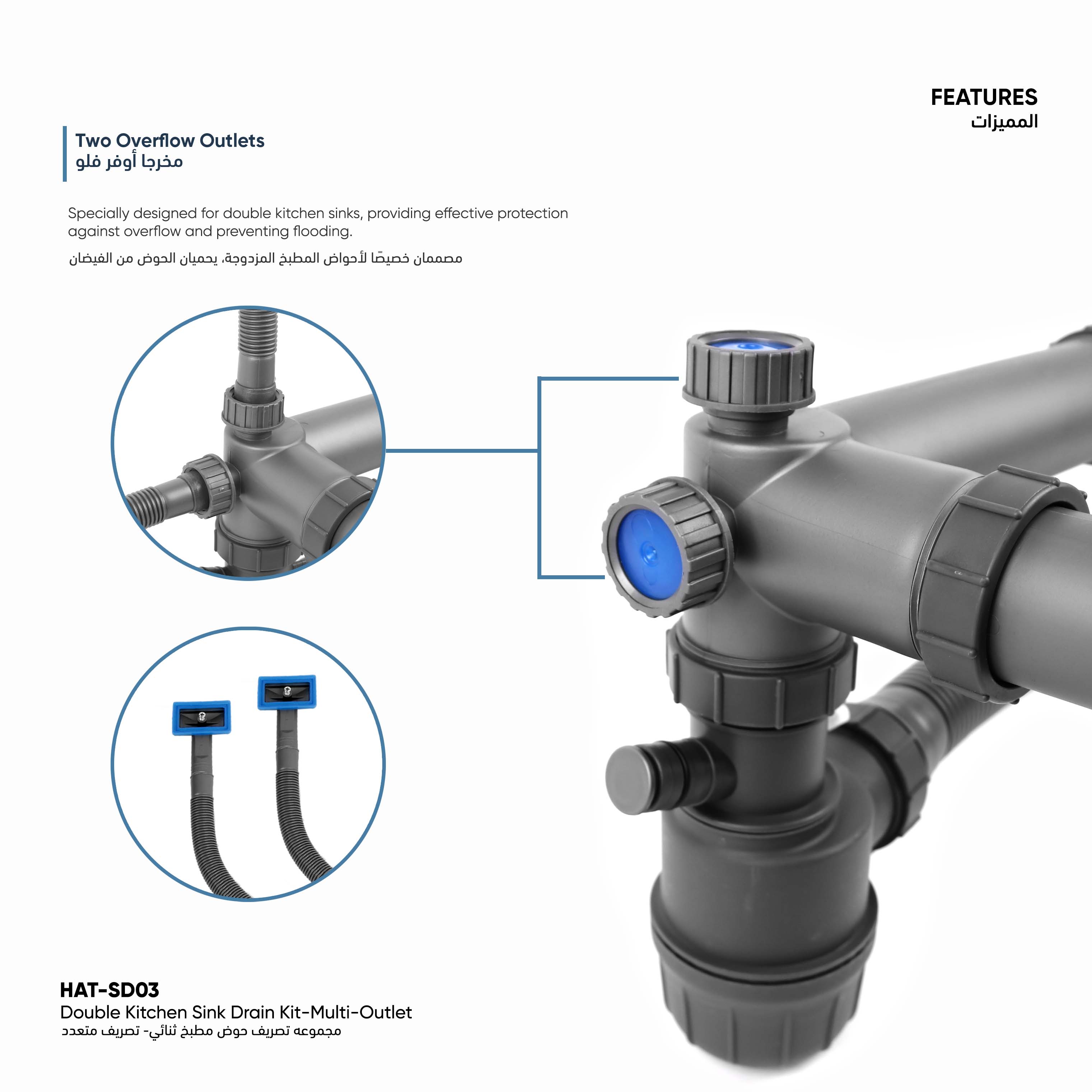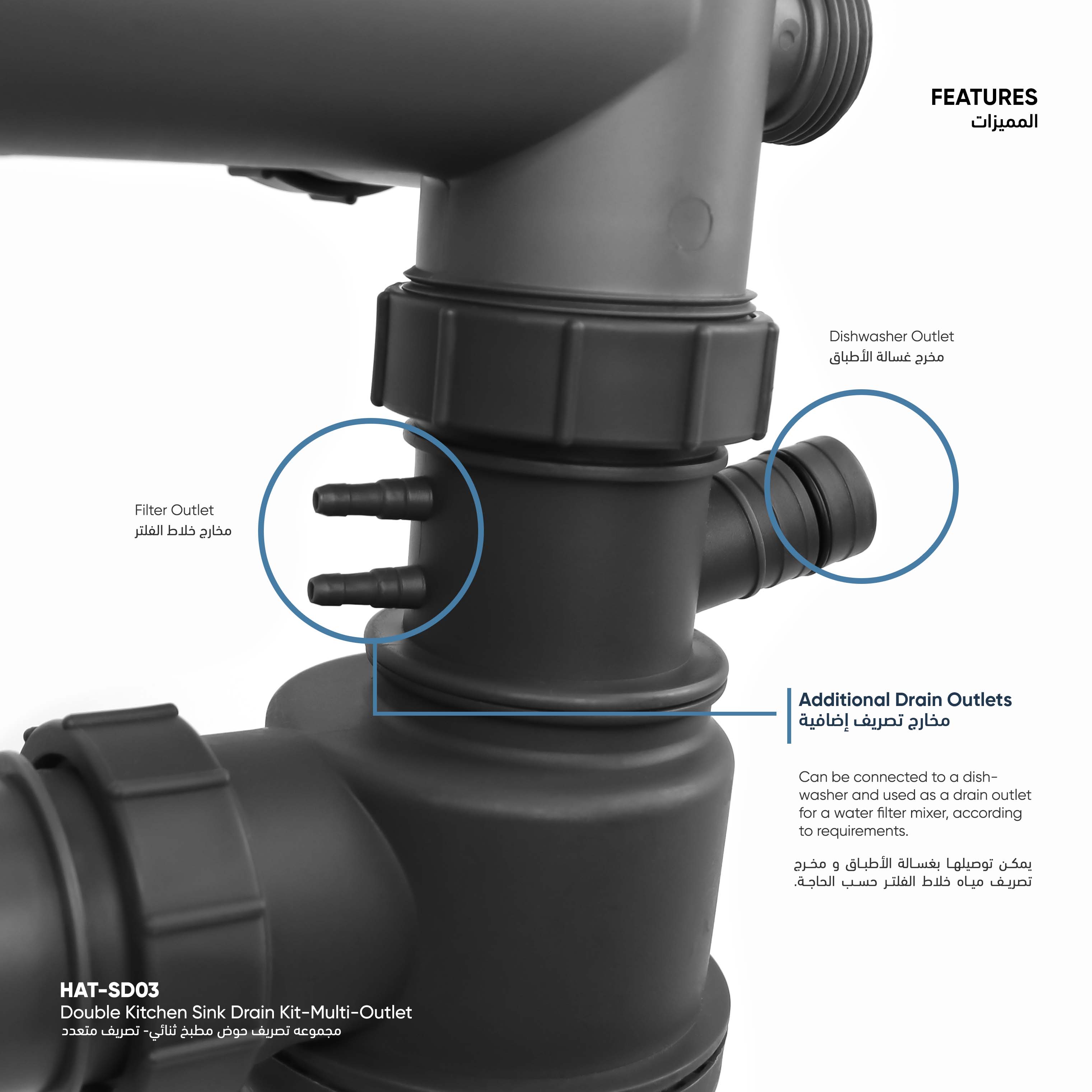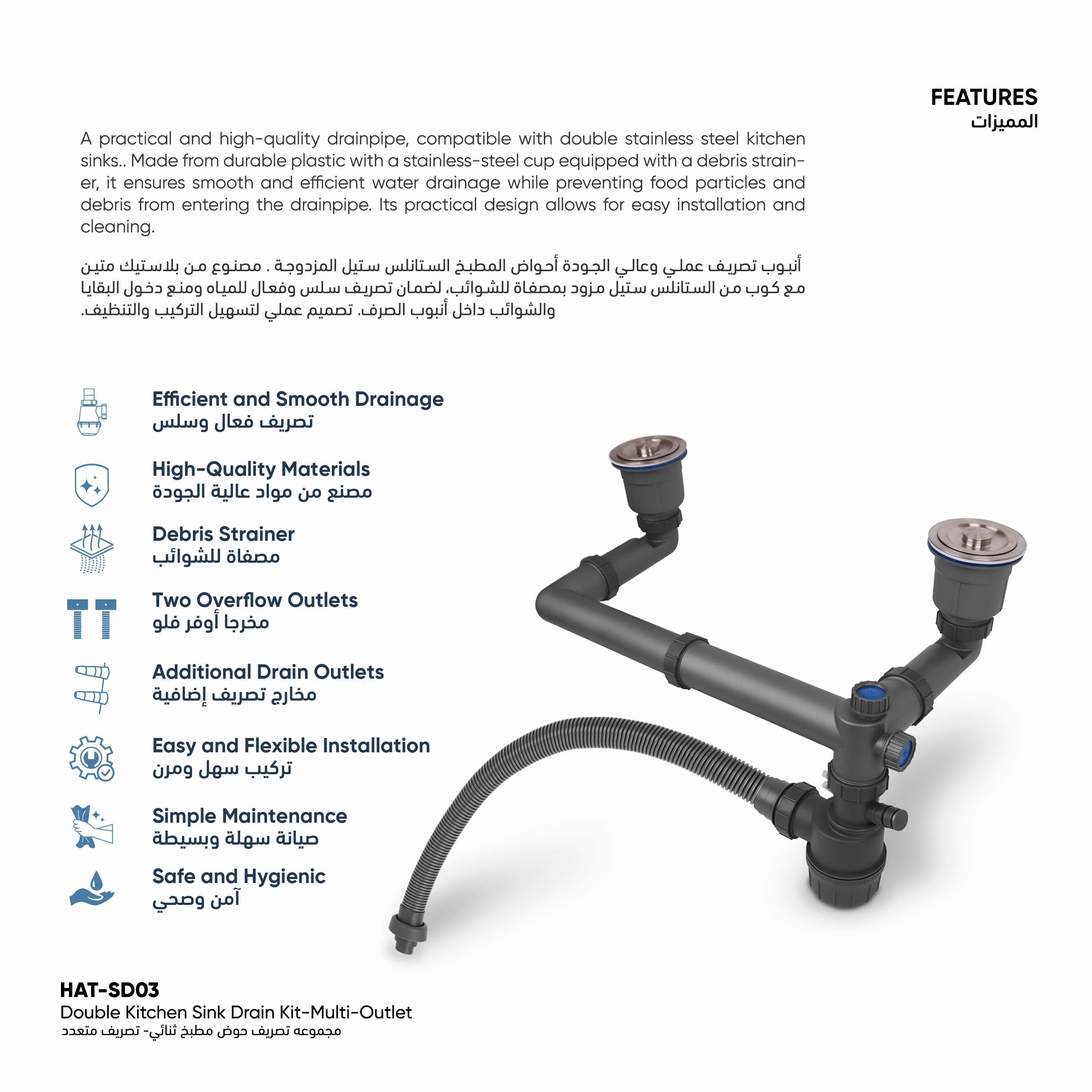 Double Kitchen Sink Drain Kit - Multi-Outlet